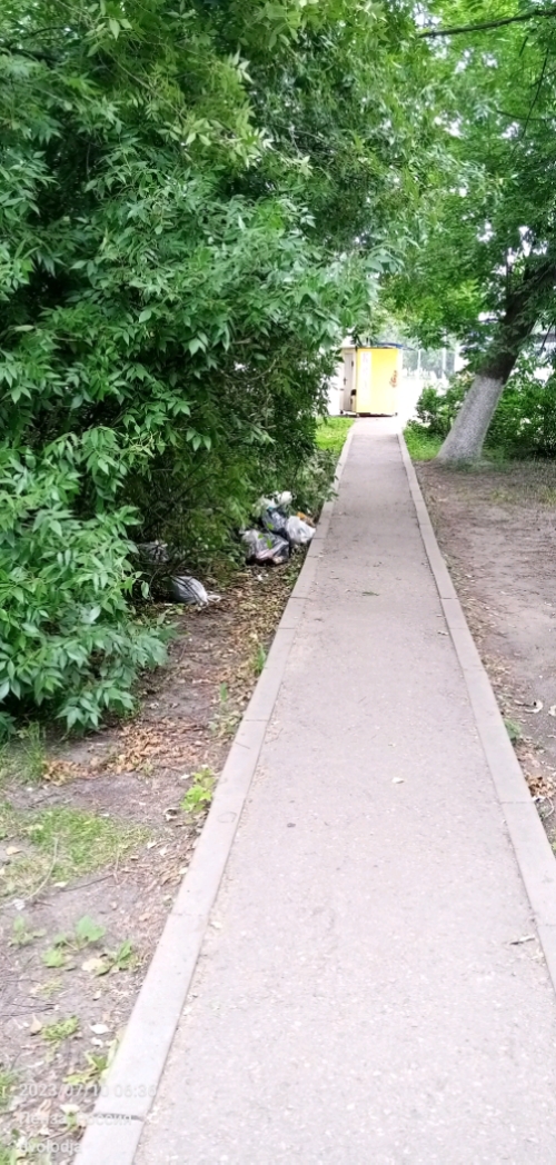 На Коммунистической, возле дома 25, на аллее постоянно кладут мусорные отходы.