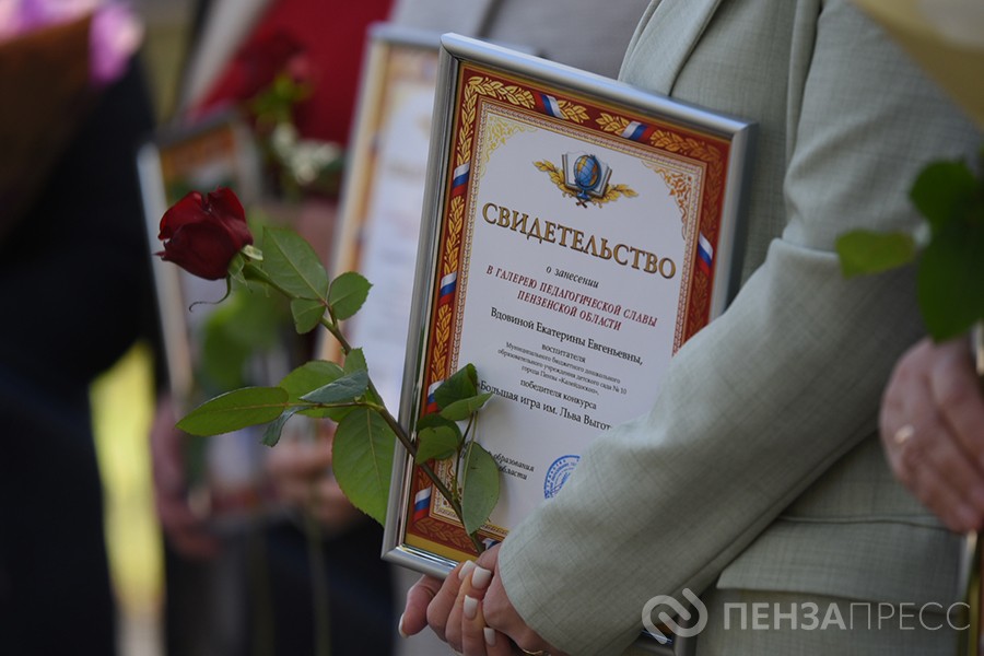 В пятницу, 3 октября, в Учительском сквере города Пензы состоялась торжественная церемония вручения свидетельств о занесении лучших учителей и воспитателей региона в Галерею педагогической славы Пензенской области.