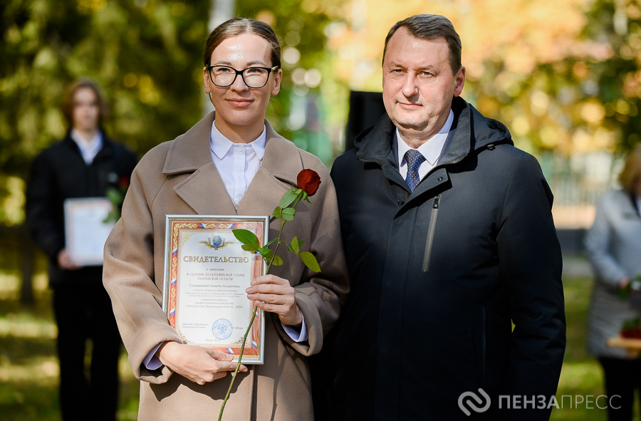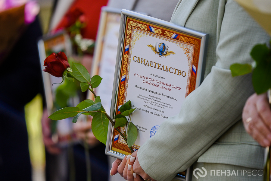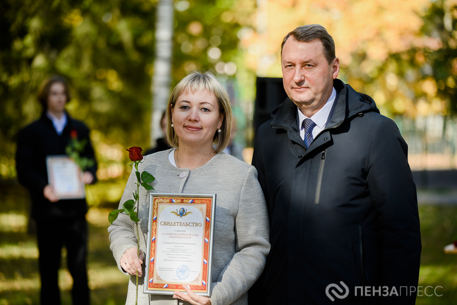 В пятницу, 3 октября, в Учительском сквере города Пензы состоялась торжественная церемония вручения свидетельств о занесении лучших учителей и воспитателей региона в Галерею педагогической славы Пензенской области. В ней приняли участие первый заместитель председателя правительства Пензенской области Олег Ягов, замминистра образования Оксана Милаева, ректор Института регионального развития Виктор Ерошенко и другие почетные гости. Событие запечатлел наш фотокорреспондент.