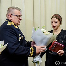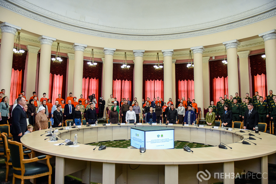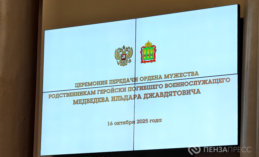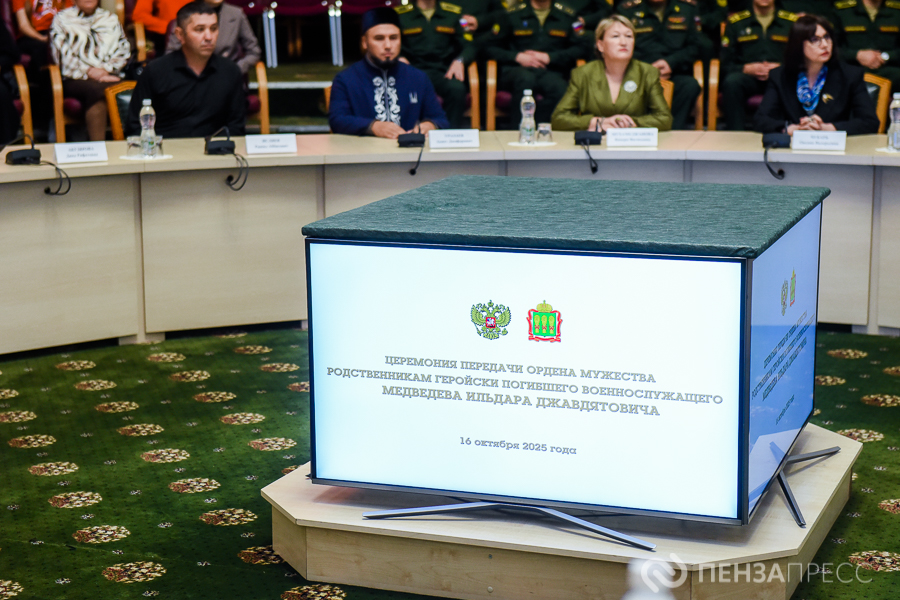 В правительстве Пензенской области в четверг, 16 октября, состоялась церемония передачи ордена Мужества родным геройски погибшего на СВО капитана Ильдара Медведева. В круглом зале собрались представители органов власти региона, военно-патриотических объединений, татарской культурной автономии, родственники, друзья и односельчане погибшего бойца. Процесс передачи ордена запечатлел наш фотокорреспондент.