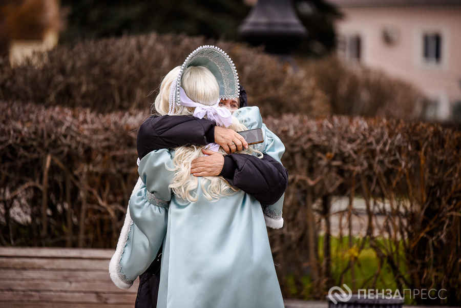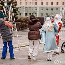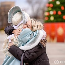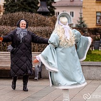 В процессе прогулки по центру города ей удалось запечатлеть и процесс общения пензенцев с зимними сказочными персонажами – Дедом Морозом и Снегурочкой, которые заряжали всех прохожих праздничным настроением, дарили теплые объятия и улыбки.