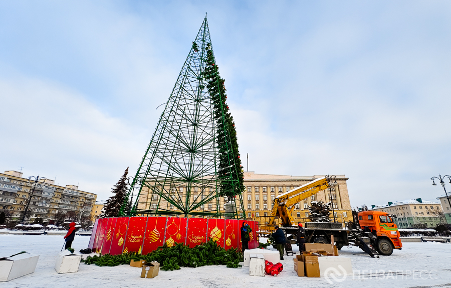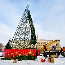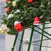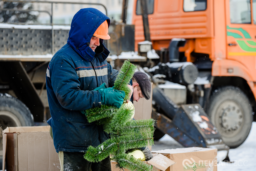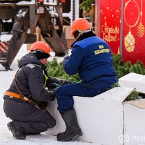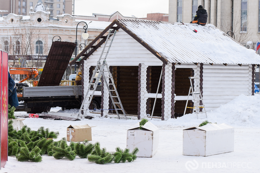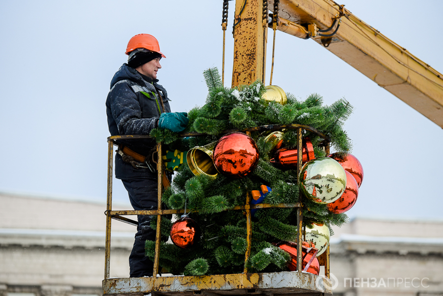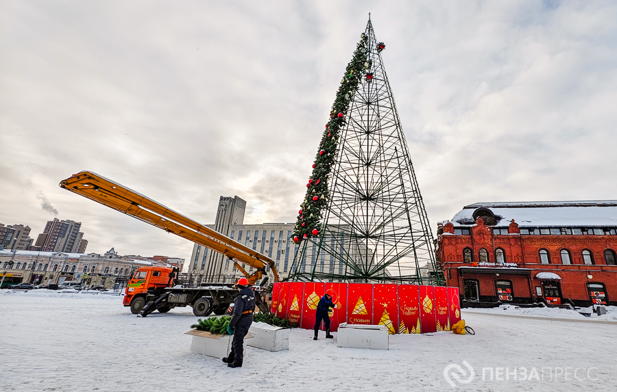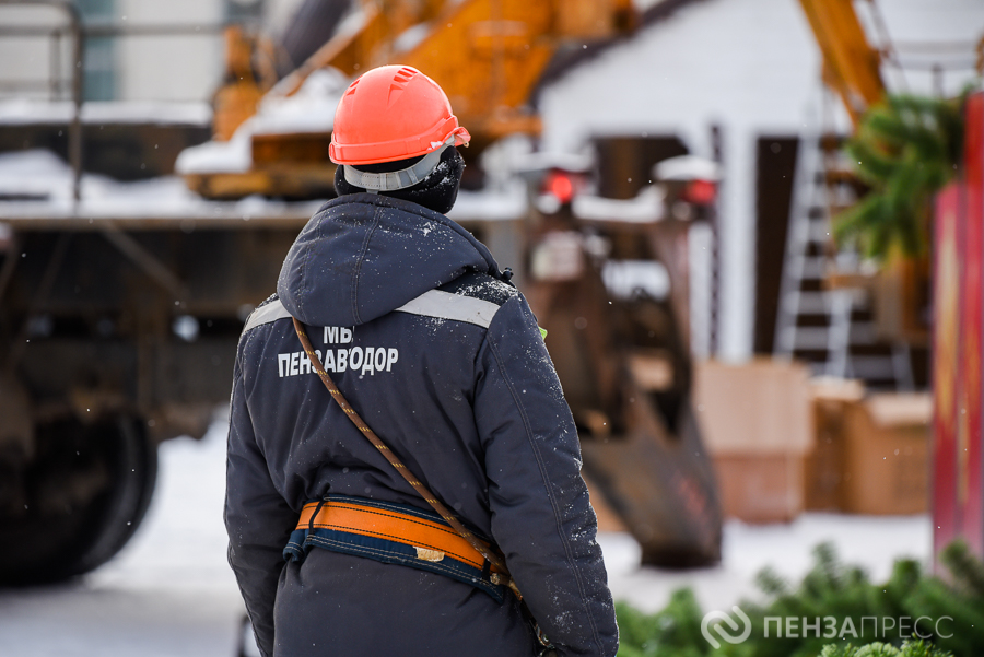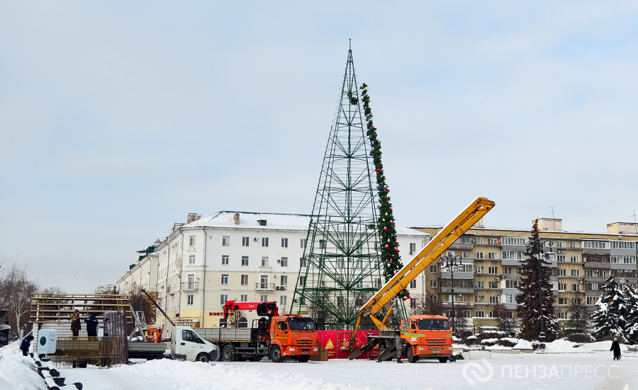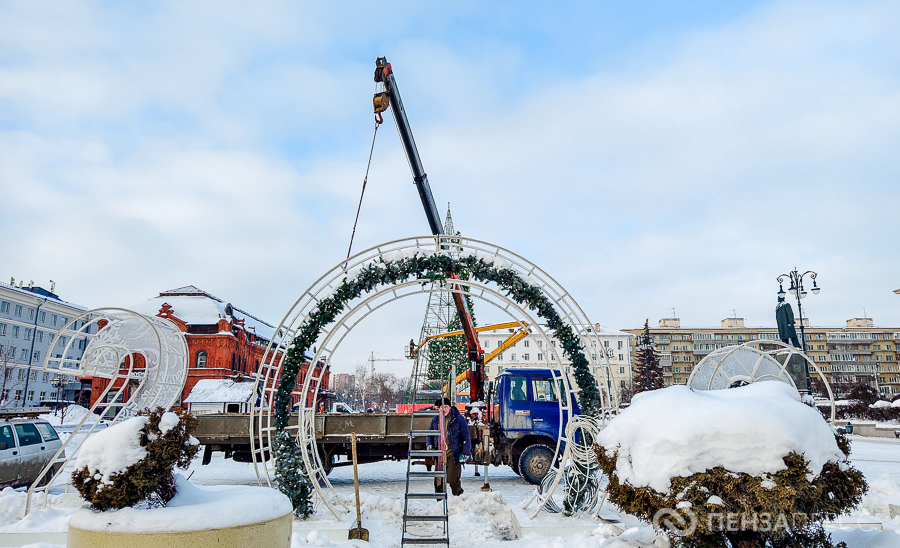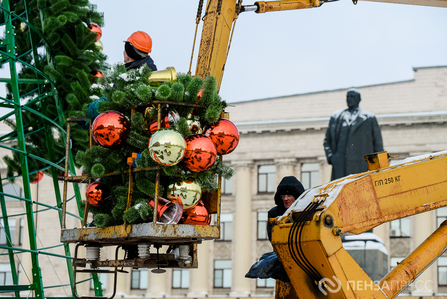 На площади имени Ленина продолжается демонтаж главной хвойной красавицы Пензы – 25-метрового дерева. Кроме того, сотрудники муниципального бюджетного учреждения «Пензавтодор» убирают цифровые инсталляции «2026» и Домик Деда Мороза.
