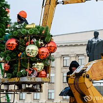 Процесс разбора праздничных конструкций запечатлел наш фотокорреспондент.