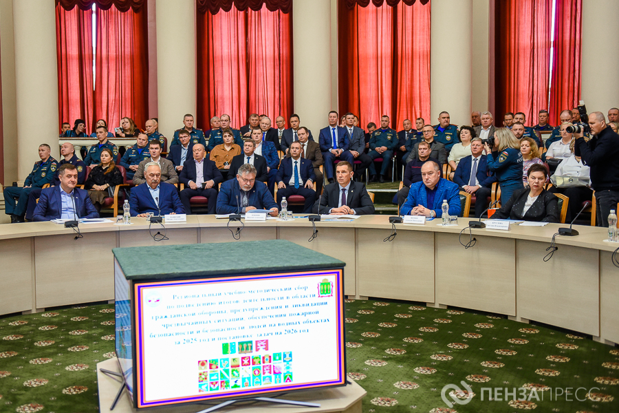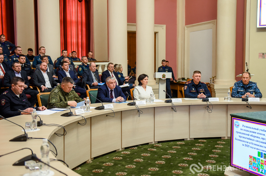 В четверг, 22 января, в круглом зале регионального правительства прошел учебно-методический сбор по подведению итогов деятельности гражданской обороны, предупреждения и ликвидации чрезвычайных ситуаций, обеспечения пожарной безопасности и безопасности людей на водных объектах Пензенской области за 2025 год. Ход заседания запечатлел наш фотокорреспондент.