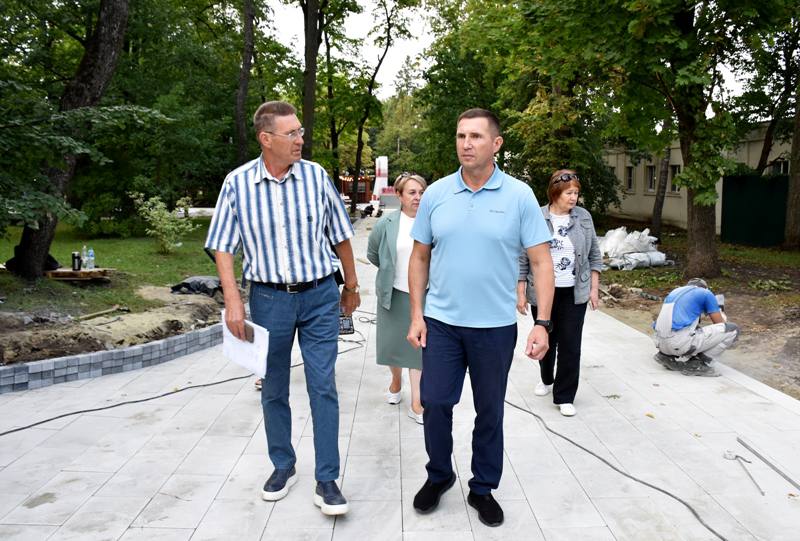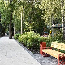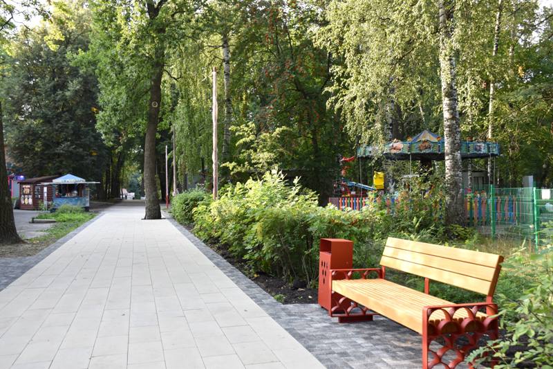 Полностью выложены плиткой аллеи парка: Лермонтовская, Молодежная, Композиторов, Белинского, Пионерская, Ленинская и Дружбы. На пяти пешеходных дорожках появились опоры освещения. В ближайшее время подрядчик установит оставшиеся светильники и лавочки двух видов.