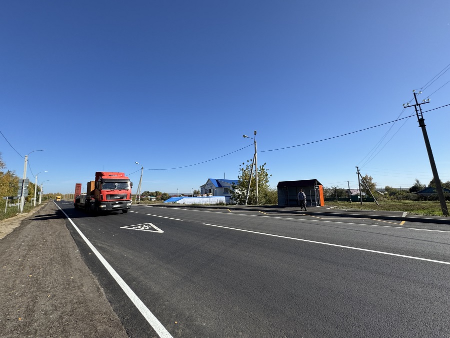 «На объекте выполнили укладку выравнивающего и верхнего слоев асфальтобетонного покрытия, сделали тротуар. Завершили установку остановочного кармана и монтаж остановочного павильона. Нанесли новую разметку», — сообщили в ведомстве.