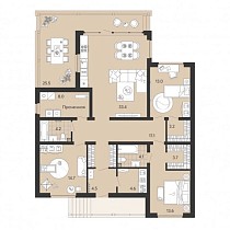 Дом M (115,5 кв. м.) имеет три спальни, просторную кухню-гостиную, два санузла, кладовую и гардеробную зону.