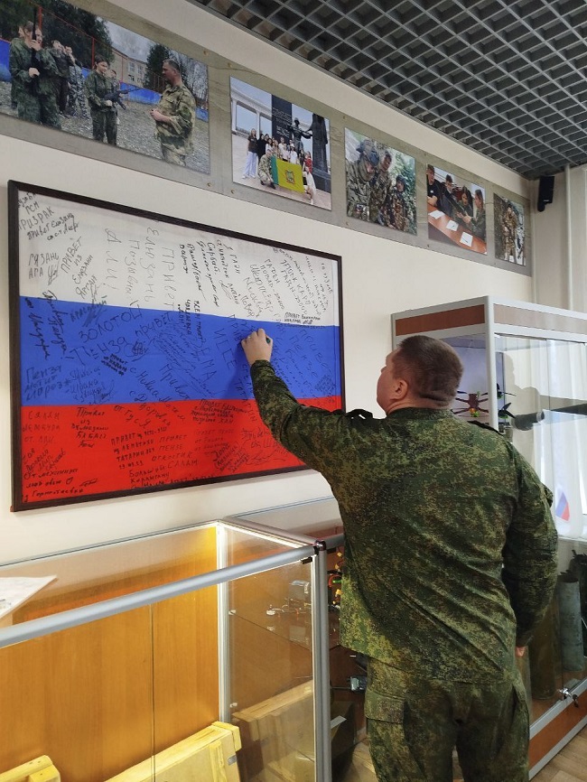 Главной его частью стала передача на ответственное хранение в Музей СВО копии боевого знамени одного из подразделений полка №1218.