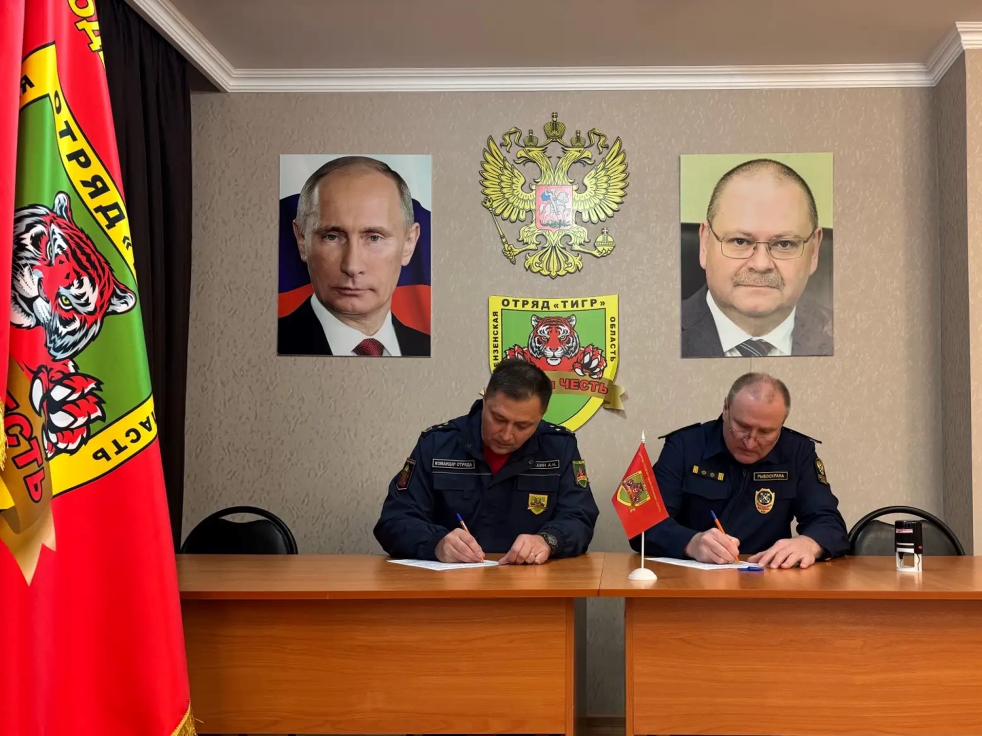 Начальник отдела государственного контроля, надзора и охраны водных биологических ресурсов по Пензенской области Волго-Камского территориального управления Федерального агентства по рыболовству Леонид Баталин посетил штаб общественного объединения правоохранительной направленности «Отряд содействия полиции «Тигр» и провел рабочую встречу с его командиром Алексеем Картушиным.