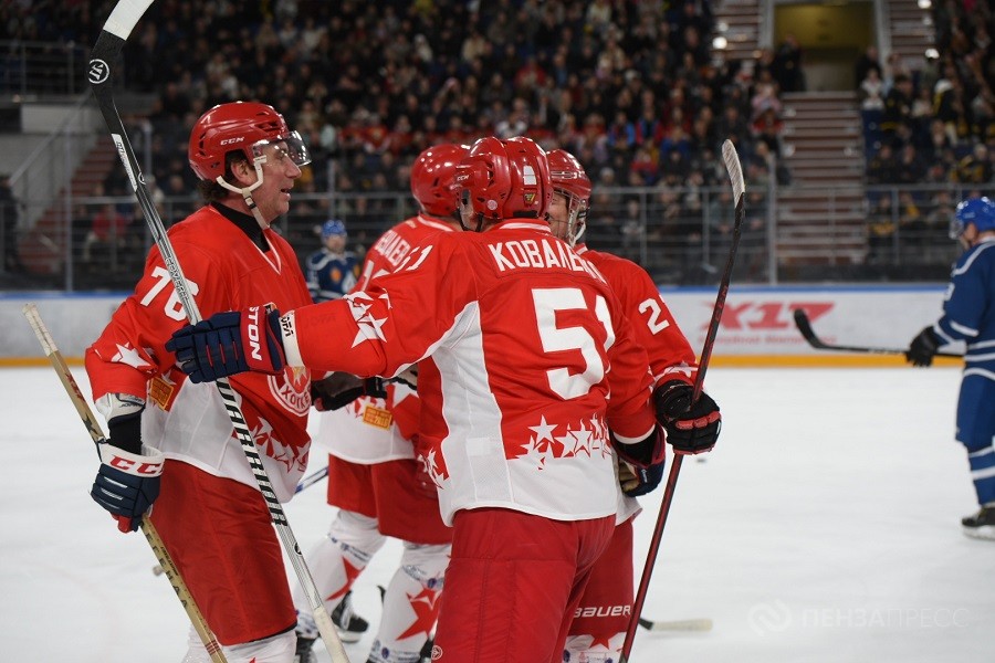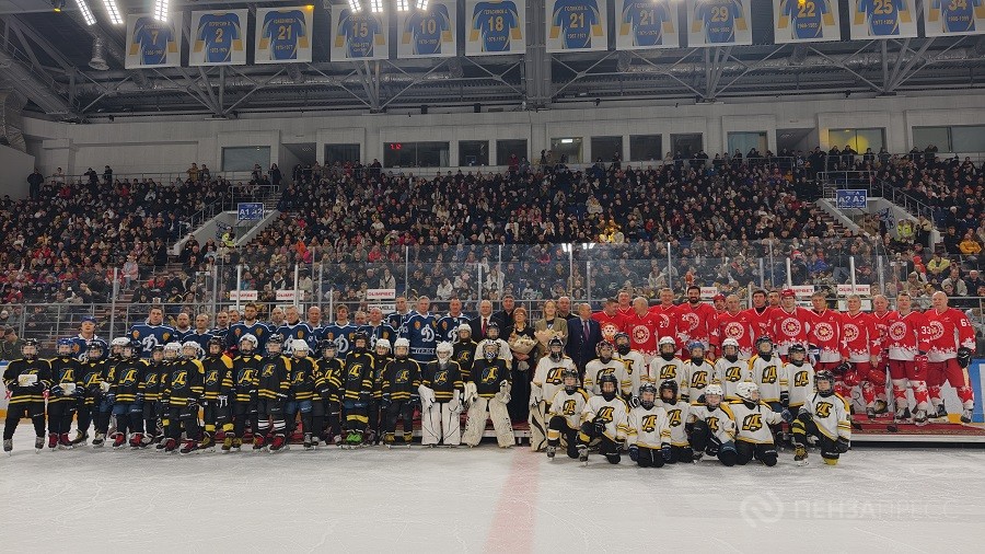 В воскресенье, 7 декабря, на льду «Дизель-Арены» прошел гала-матч между командами «Легенды хоккея» и «Динамо-Альфа» в поддержку первого открытого детско-юношеского турнира памяти уроженца Пензенской области, Героя России Валерия Канакина.