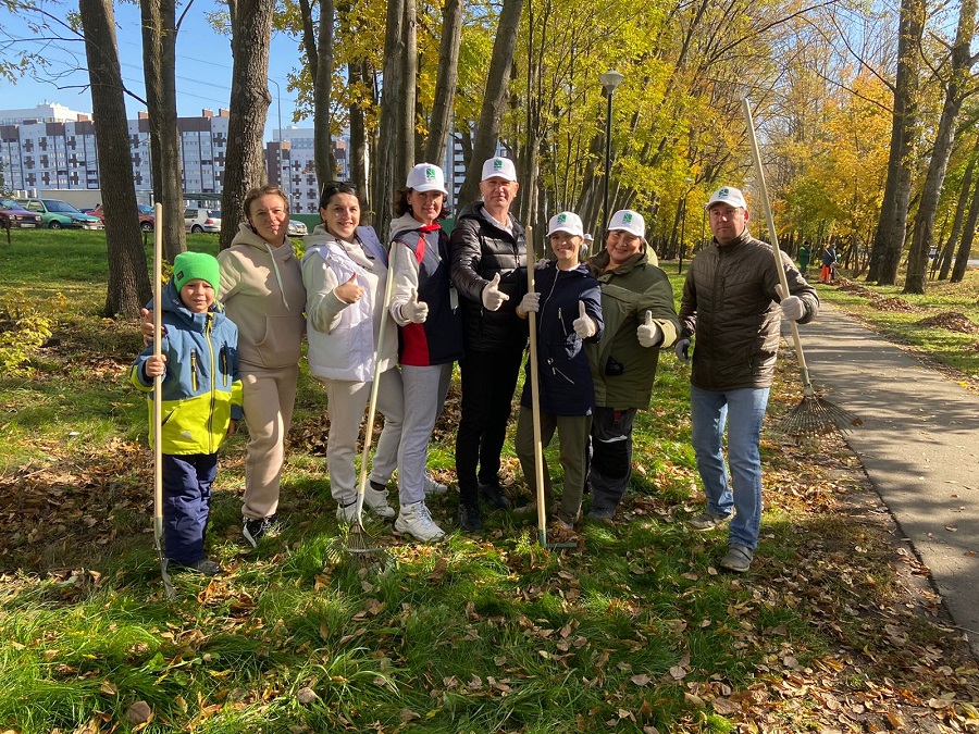 Жители «Арбековской заставы» вместе с сотрудниками ГК «Территория жизни» вышли на аллею убирать осеннюю листву.