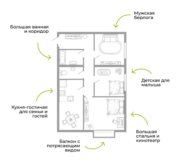 У Константина – семья: жена и маленький сын. Рассматривая варианты планировок при покупке квартиры, он сразу решил, что это будет «трешка» с отдельными комнатами и большим пространством для каждого члена семьи.