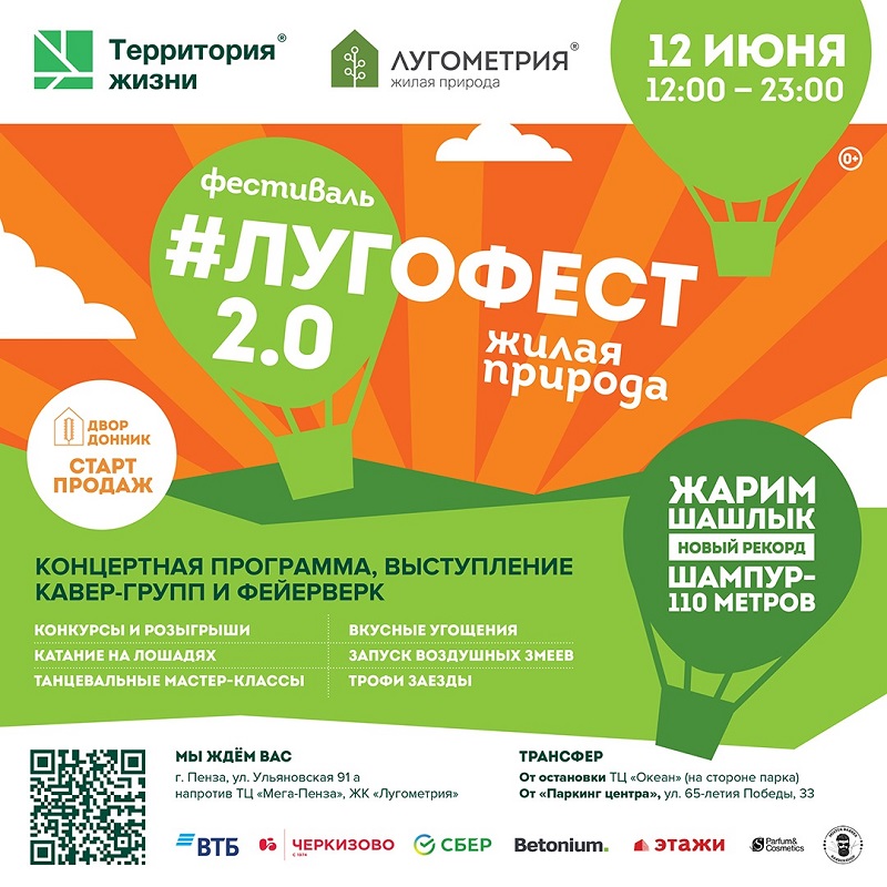 Вход на фестиваль - бесплатный. Гостей ждут 12 июня в жилом комплексе «Лугометрия» с 12:00 до 23:00. Место проведения - ул. Ульяновская, 91а (напротив ТЦ «Мега-Пенза» (624-й километр трассы М-5).