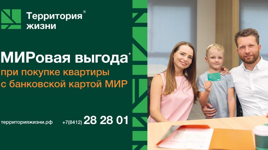 10 августа стартует новая программа лояльности (18+) от крупнейшего застройщика Пензенской области - группы компаний «Территория жизни». Владельцы банковских карт российской платежной системы «МИР» смогут получить дополнительную выгоду при покупке квартиры в ЖК «Арбековская застава» и «Лугометрия». Расскажем о всех преимуществах программы лояльности «МИРовая выгода»*.