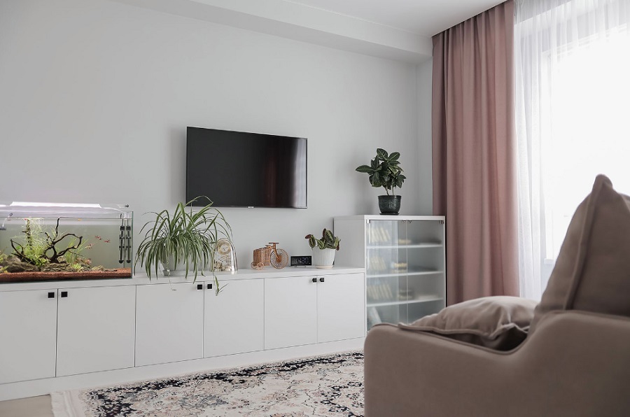 В отделку SMART PRO входят межкомнатные двери, натяжные потолки, настенная и напольная плитка, ламинат светлых тонов, стиральная машина, кухонный модуль и полностью укомплектованный санузел с сантехникой.