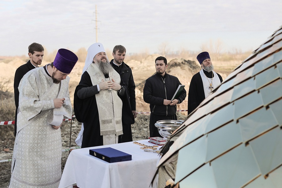 В этот день митрополит также посетил площадку нового строящегося храма Вениамина Печерского в жилом комплексе «Лугометрия». Здесь был совершен обряд освящения купола дома Причта, входящего в новый храмовый комплекс во имя преподобного Вениамина Киево-Печерского.