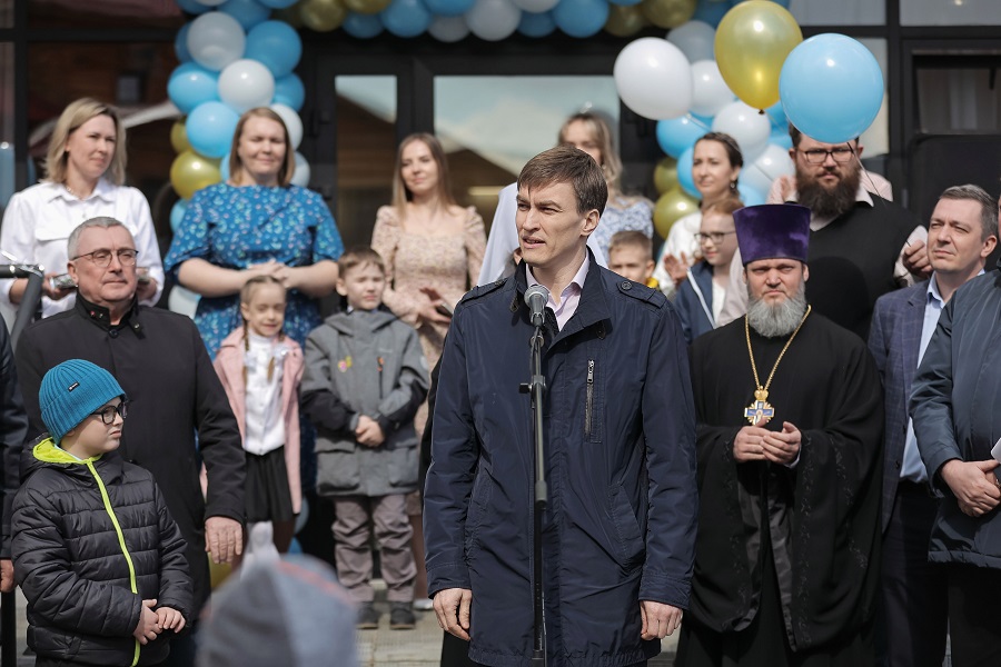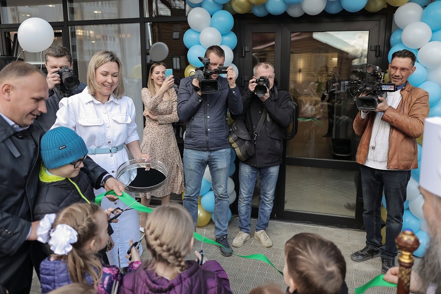 В торжественной обстановке в присутствии жителей микрорайона, родителей и воспитанников центра раннего развития почетные гости перерезали символическую ленту.