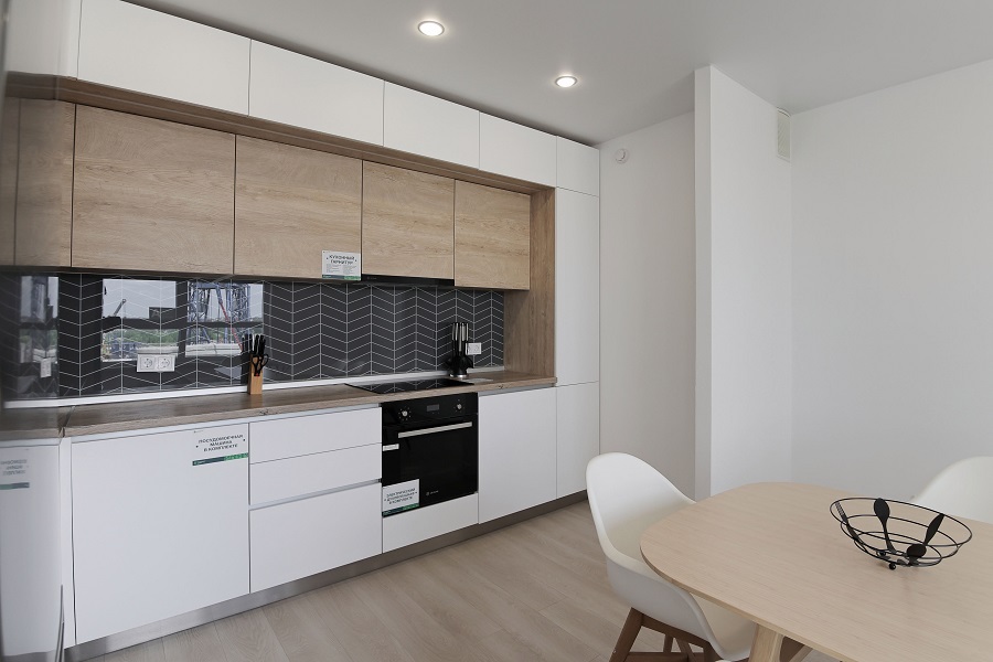 К тому же застройщик предлагает варианты готовой отделки «Smart pro» и «Все включено»: установлены розетки и выключатели, укомплектован санузел с ванной, установлены натяжные потолки, ламинат светлых тонов, межкомнатные двери, а также стиральная машина и кухонный гарнитур. На все гарантия от производителя – пять лет.