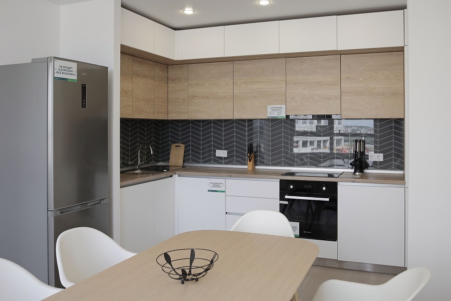 Еще одна важная особенность квартир в «Лугометрии» – отделка «Все включено». Можно купить квартиру, уже готовую к заселению. В комнатах уже есть обои под покраску, натяжные потолки со светильниками, ламинат светлых тонов, межкомнатные двери. Полностью укомплектован санузел: ванная, раковина, унитаз, стиральная машина. А на кухне – гарнитур со встроенной техникой! На все есть гарантия от производителя.