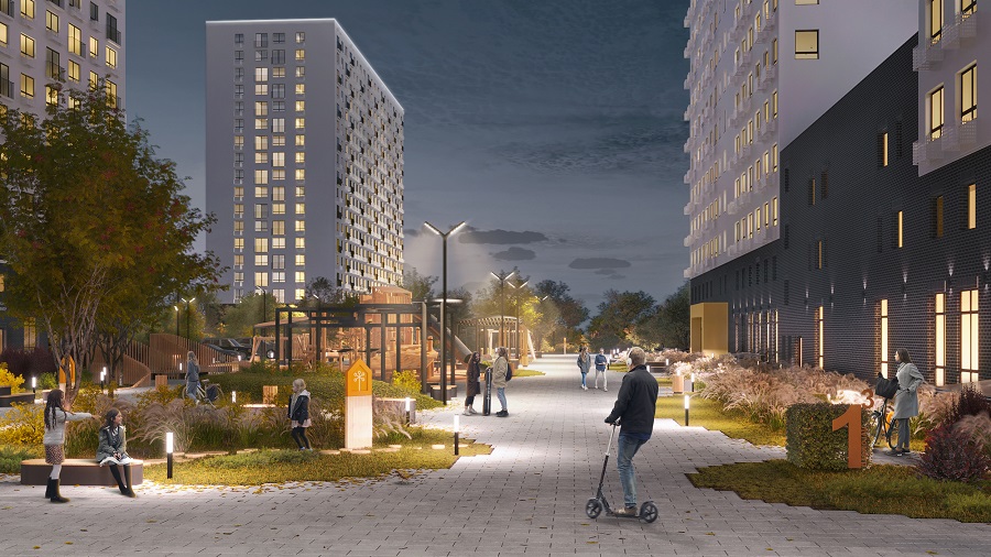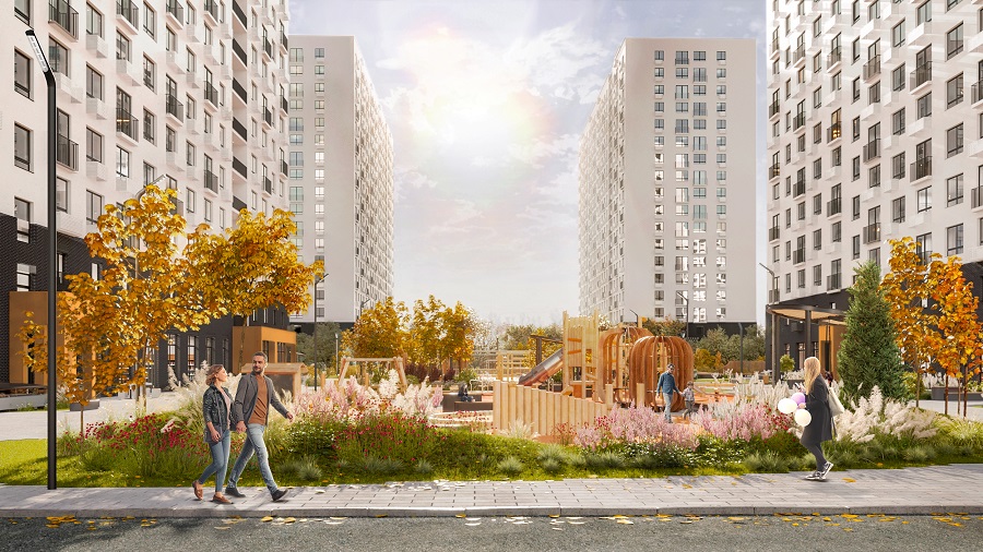 Центром притяжения станет центральный пешеходный бульвар, который соединит практичность города и красоту природы. На нем будут небольшие кафе, прогулочные зоны, велодорожки. Значимую часть займут ухоженные газоны, на которых можно спокойно отдохнуть: провести фитнес-занятие на свежем воздухе, поиграть с детьми в мяч, устроить пикник с друзьями или просто полежать на солнце.