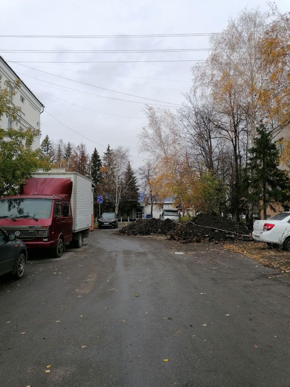 Во дворе между домами № 10 и 12 на улице Ленина не вывозят мусор с контейнерной площадки, так как перекопана дорога около дома № 8 и она загораживает проезд между домами № 8 и № 10.