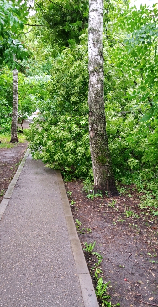 Сломалась дерево, частично загородила пешеходную дорогу. Никому не нужна аллея наверное?