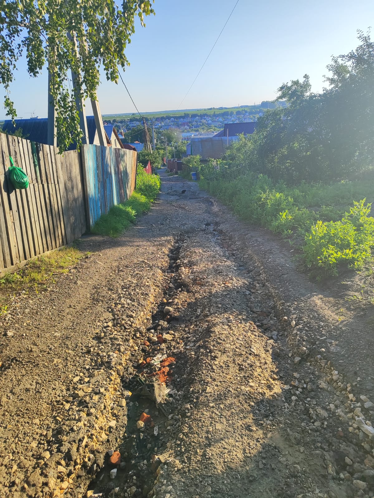 Ширина проезжей части не превышает 4-5 метров. Движение одностороннее. Ливневая канализация отсутствует. Проезд на легковом транспорте к собственному жилью невозможен, что не позволяет полноценно пользоваться не только собственным жильём, но и автотранспортом. Мы платим налоги не только за землю, но также и за транспорт и страховку. В итоге все простаивает!!! С детской коляской не проехать. Проезд спецтранспорта тоже затруднен. Это ставит под угрозу безопасность и здоровье жителей.