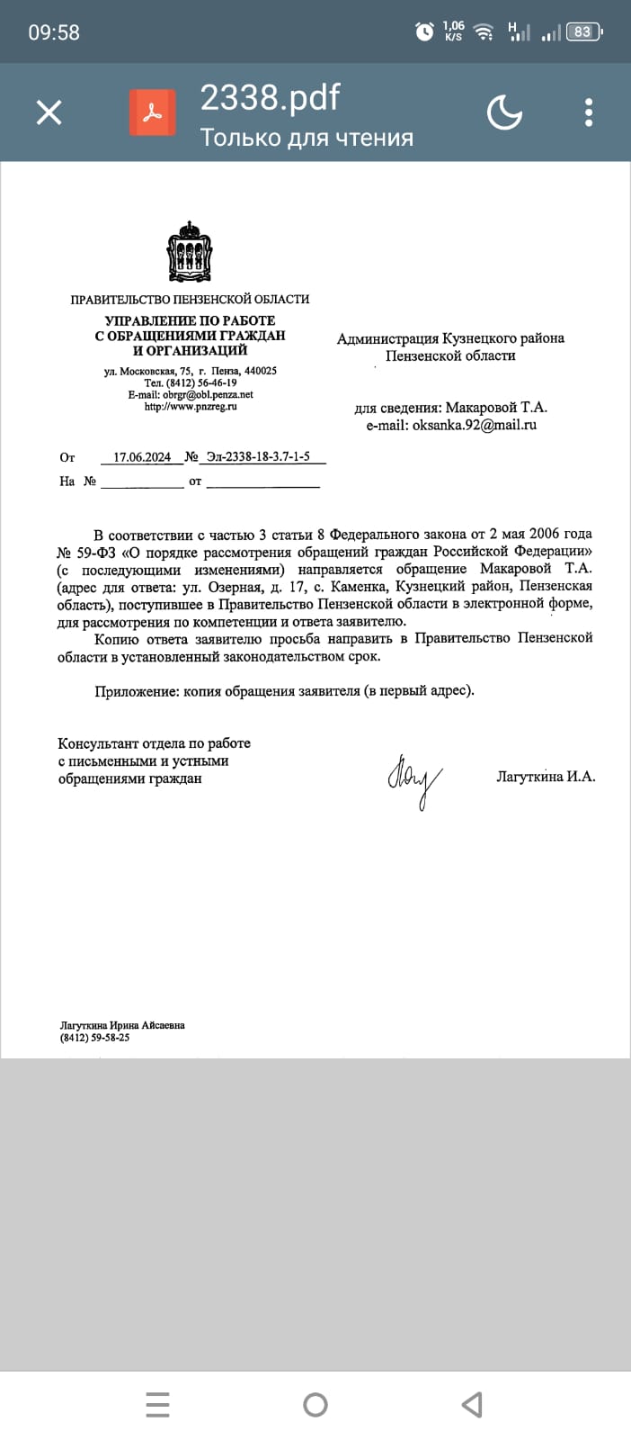 Мы пишем и звоним во все инстанции, написали коллективное письмо с подписями жителей в районную прокуратуру, но везде нам приходят отписки. Письма я прикреплю в файлы.Помогите нам решить этот вопрос.