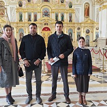 В сопровождении реставраторов министр осуществил осмотр внутренних интерьеров центральной части храма.