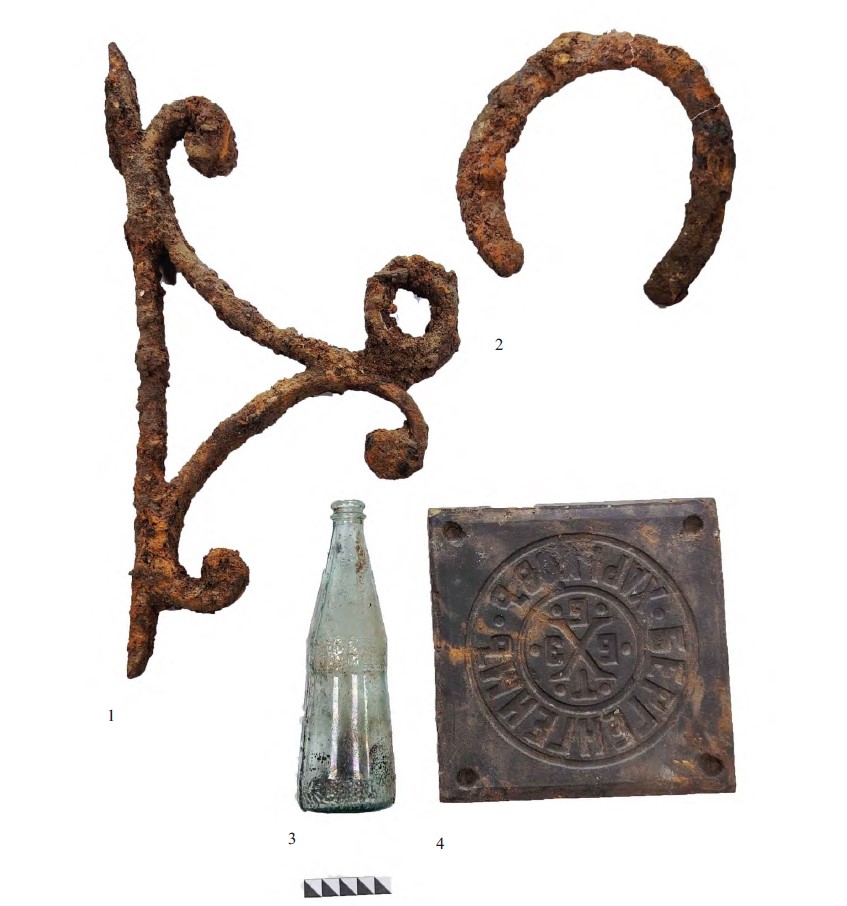 Собрана большая коллекция археологического материала из 595 предметов, среди которых — нательные кресты, стеклянные сосуды, гильзы, фрагменты керамических и стеклянных сосудов, фаянсовых изделий, кости животных и ременные пряжки.
