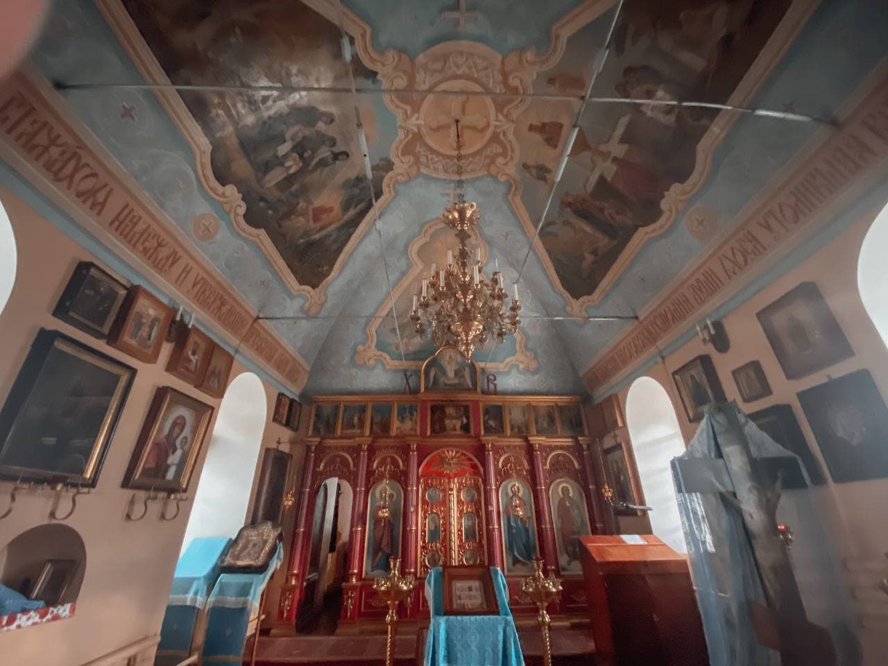 Сейчас все наоборот – в этом храме служат на постоянной основе, а во время праздников перемещаются в Тихвинский и Никольский, когда приходит много людей. Роспись в церкви немного попроще. Она открывалась первой, так как ее проще было обустроить после советской разрухи: в мае 1997 года здесь отслужили первый молебен. А в Тихвинском храме богослужения возобновились только в 2000 году.