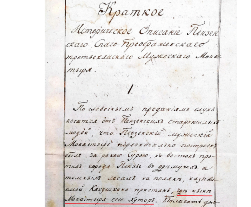 Кроме того, Александр Дворжанский указал, что оппонент ссылается на документ 1841 года. В нем указано, что, по словам старожилов, «Пензенский мужеский монастырь первоначально построен был за рекою Сурою, на востоке против города Пензы в дремучих и темных лесах на поляне, называемой Какушкина пристань». По мнению Заслуженного работника культуры Пензенской области, в исследованиях не стоит опираться на слухи.