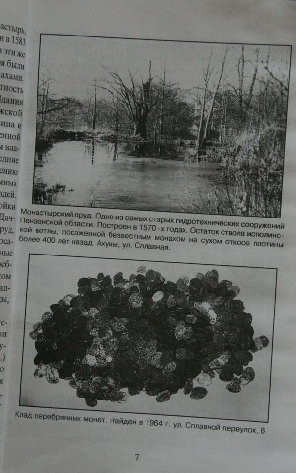«К каким выводам можно прийти исходя из полученной информации? Во временной период, который задает датировка клада, в этой местности находился только Предтеченский монастырь. И ничего более. Временные рамки существования монастыря и клада совпадают. Уже значительно позже, после указа Петра I от 1722 года, здесь появляется лесная стража. Поэтому вывод однозначен: клад принадлежал монастырю. Сбережения монастыри обычно прятали в стенах церквей, закапывали в землю на территории культового сооружения либо вблизи. Из этого следует, что там, где был найден клад, и находился монастырь. Главный вывод: пензенский Предтеченский монастырь находился на территории современных Ахун», – утверждает Александр Голяков.