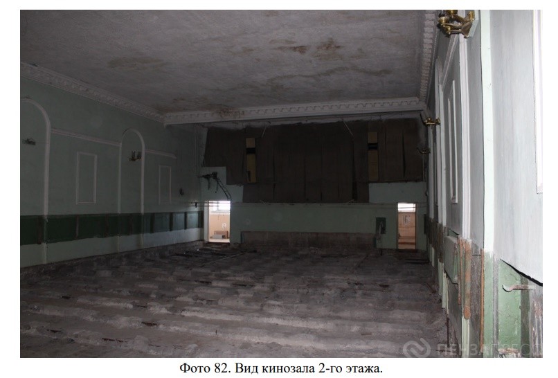 В документе также сообщается, что в ходе госэкспертизы были зафиксированы многочисленные трещины в здании, отсутствие полов в кинозалах, нарушение температурно-влажностного режима из-за отсутствия отопления. Общий износ здания в настоящее время составляет более 50%, что соответствует категории IV – предаварийное или аварийное состояние.