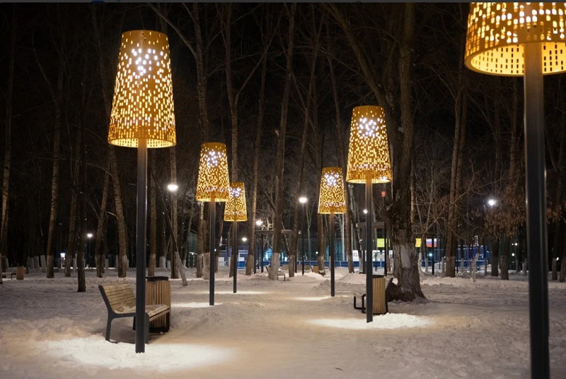 Атмосферу чуда здесь создает необычное освещение: вдоль одной из дорожек установлены фонари-абажуры. На входе в «Парк времен» располагаются огромные часы, которые показывают время необычным способом. Зимой здесь заливают каток, и сезон 2021-2022 не стал исключением