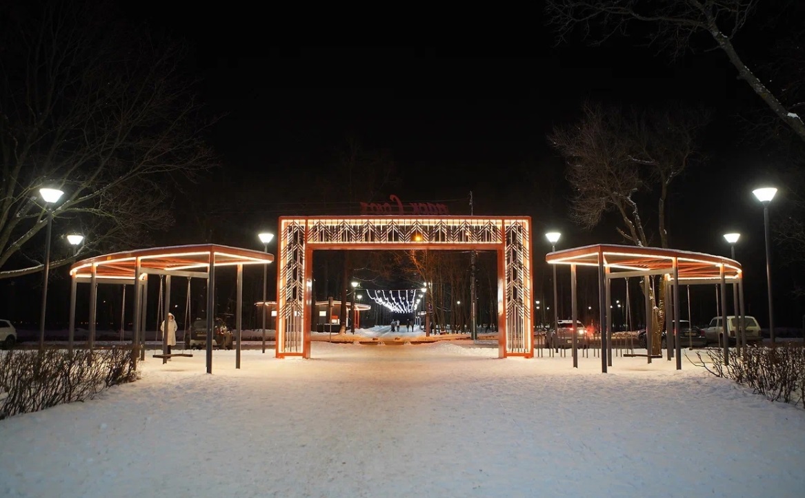На стороне у ФОКа «Спутник» гуляющих ждет живописное место с настоящим «звездным» небом над головой – гирлянда-сетка сияет круглый год, но в предновогоднюю пору она кажется особенно волшебной. Добавляют атмосферы яркая ротонда и фонари. Парк появился всего полгода назад, но успел полюбиться пензенцам, которые с удовольствием проводят тут время.