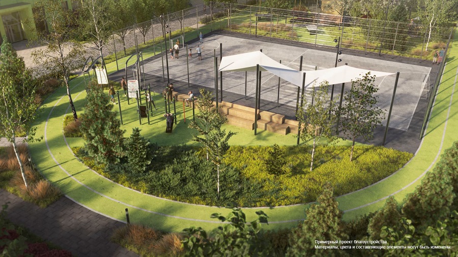 Отметим, что детские и спортивные площадки снабжены сертифицированным ударопрочным резиновым покрытием, чтобы снизить нагрузку при тренировке и уберечь малышей от травм.