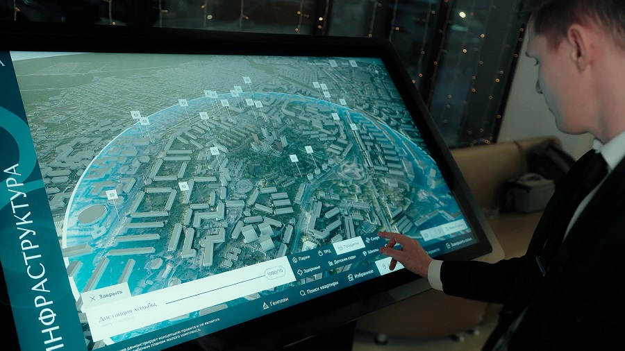 Хочется отметить, что максимальный эффект присутствия, который даёт сенсорная панель с 3D-моделью, имеет особую ценность, когда объект еще невозможно увидеть вживую. Прогулка по территории квартала в объемном пространстве помогает как бы «примерить» атмосферу места, которое может стать твоим домом.