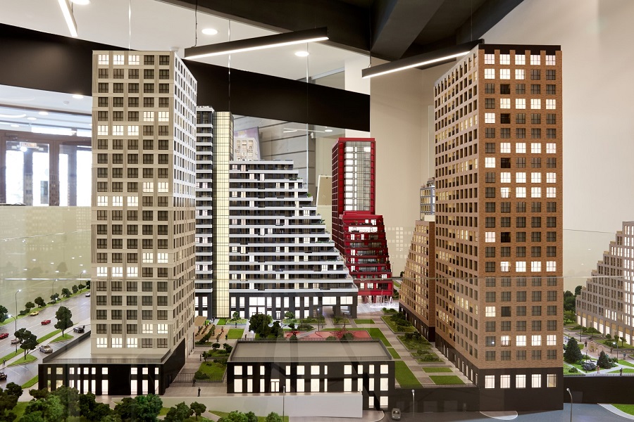 Кстати, если выбрать определенную квартиру, то соответствующие ей окна на макете уютно засияют. Это по-настоящему волшебная деталь: от света в маленьком окошке веет теплом и ощущением спокойствия, как дома.
