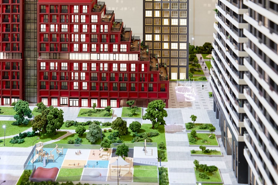 Кроме 3D-панели, в офисе «Рисана» есть еще и роскошный макет Scala City, который увлекательно разглядывать со всех сторон. Детализация невероятная: горит каждый фонарик, крохотные скамеечки, аккуратные пешеходные дорожки, деревца — чем дольше смотришь, тем больше интересных элементов находишь.