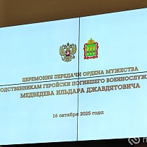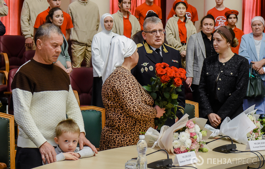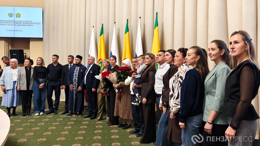 В правительстве Пензенской области в четверг, 16 октября, состоялась церемония передачи ордена Мужества родным геройски погибшего на СВО капитана Ильдара Медведева. В круглом зале собрались представители органов власти региона, военно-патриотических объединений, татарской культурной автономии, родственники, друзья и односельчане погибшего бойца. Процесс передачи ордена запечатлел наш фотокорреспондент.