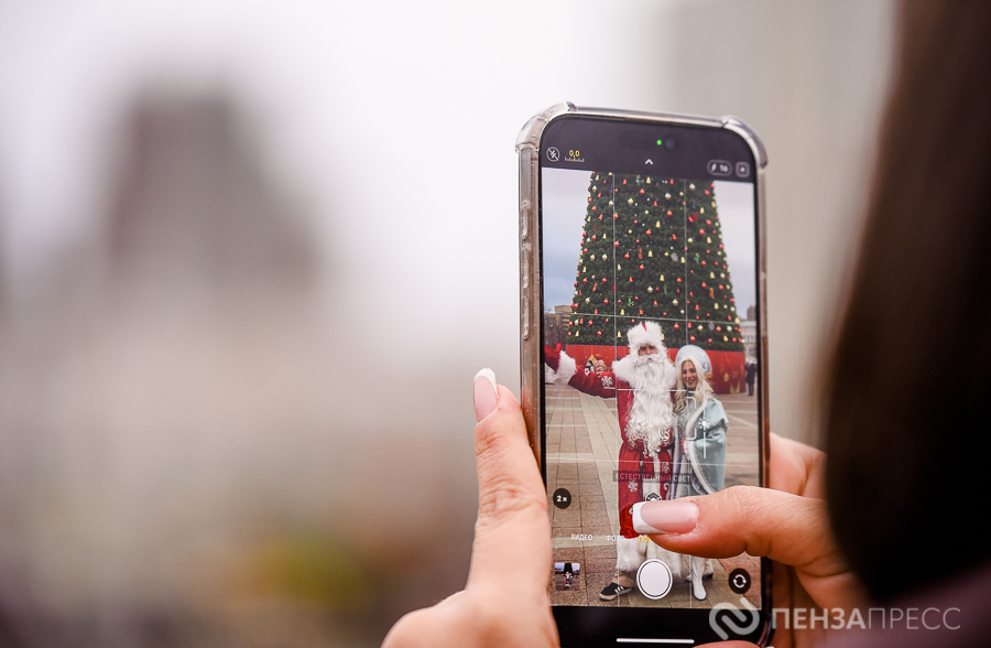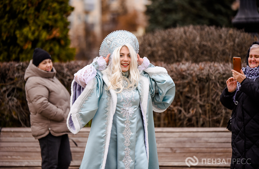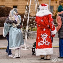 В процессе прогулки по центру города ей удалось запечатлеть и процесс общения пензенцев с зимними сказочными персонажами – Дедом Морозом и Снегурочкой, которые заряжали всех прохожих праздничным настроением, дарили теплые объятия и улыбки.