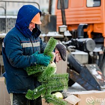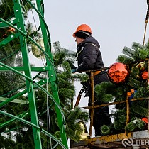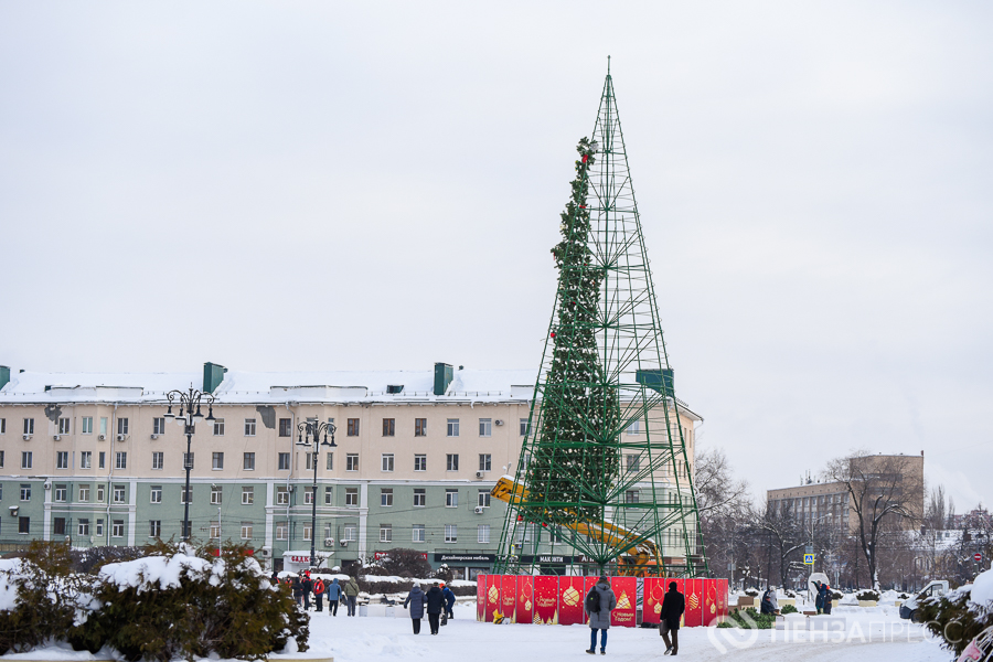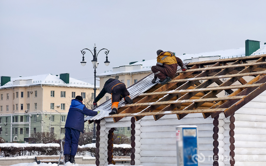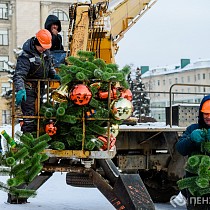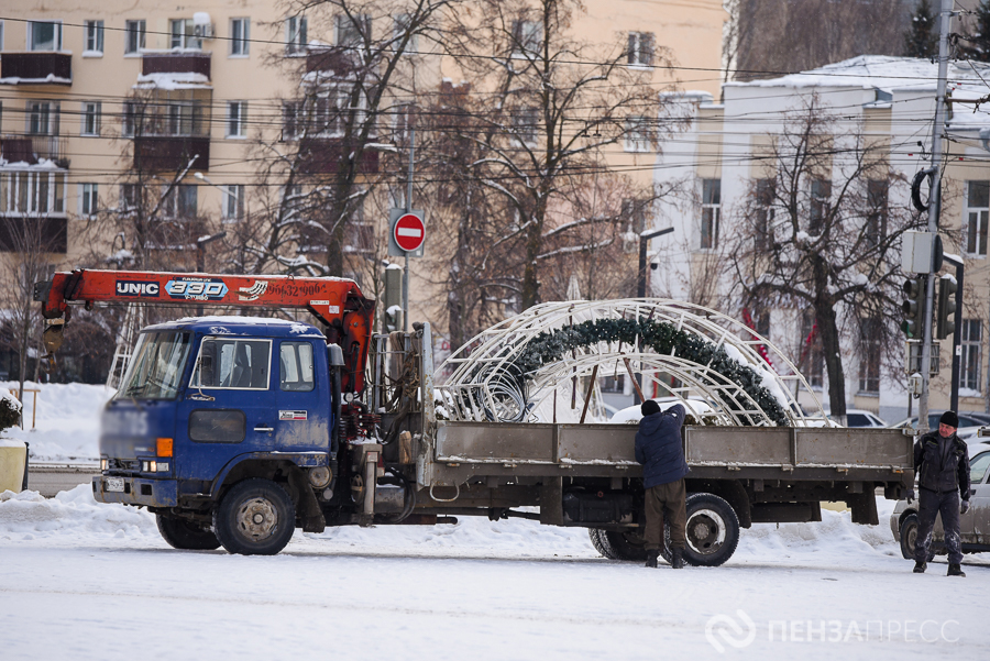 На площади имени Ленина продолжается демонтаж главной хвойной красавицы Пензы – 25-метрового дерева. Кроме того, сотрудники муниципального бюджетного учреждения «Пензавтодор» убирают цифровые инсталляции «2026» и Домик Деда Мороза.