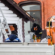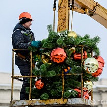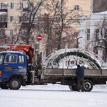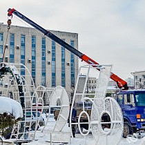 Процесс разбора праздничных конструкций запечатлел наш фотокорреспондент.