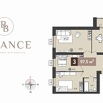 Жилой комплекс находится неподалеку от магазинов и центров развлечений. Застройщик предлагает 3-комнатные квартиры, площадью 97,5 квадратных метров.
