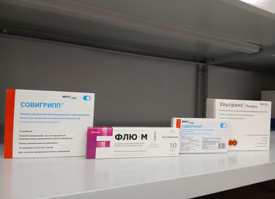 В медорганизации поступили вакцины для взрослых «Совигрипп» в количестве 105 000 доз, «Флю-М» — 2920 доз и для детей —«Ультрикс Квадри» в количестве 31440 доз.