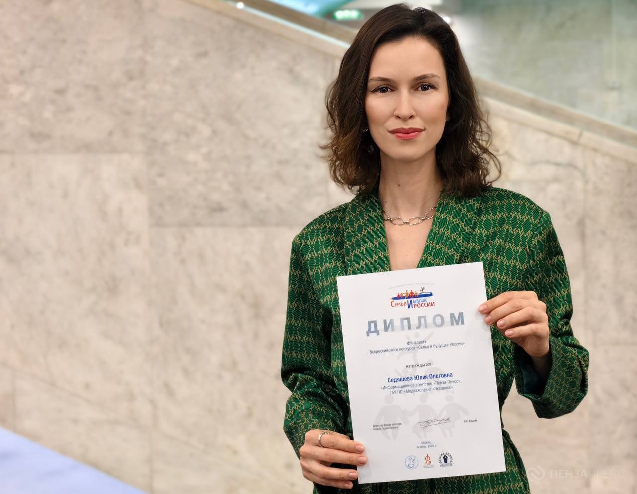 На ней были подведены итоги конкурса для журналистов «Семья и будущее России». Корреспондент информационного агентства «Пенза-Пресс» государственного медиахолдинга «Экспресс» Юлия Седяшева удостоена диплома финалиста.