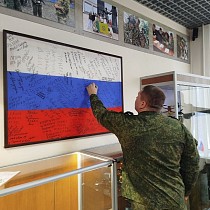 Главной его частью стала передача на ответственное хранение в Музей СВО копии боевого знамени одного из подразделений полка №1218.