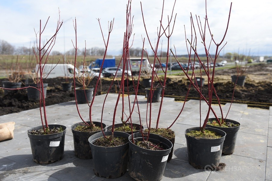 На участке были высажены клены, ели, гортензии, кизильник, можжевельник и сирень — всего более 100 растений.