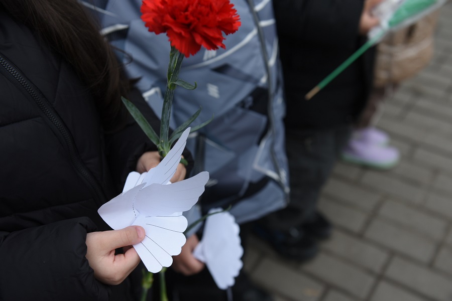 Собравшиеся возложили цветы и венки к подножию мемориала, а также выпустили в небо шары в память о жертвах страшной аварии.